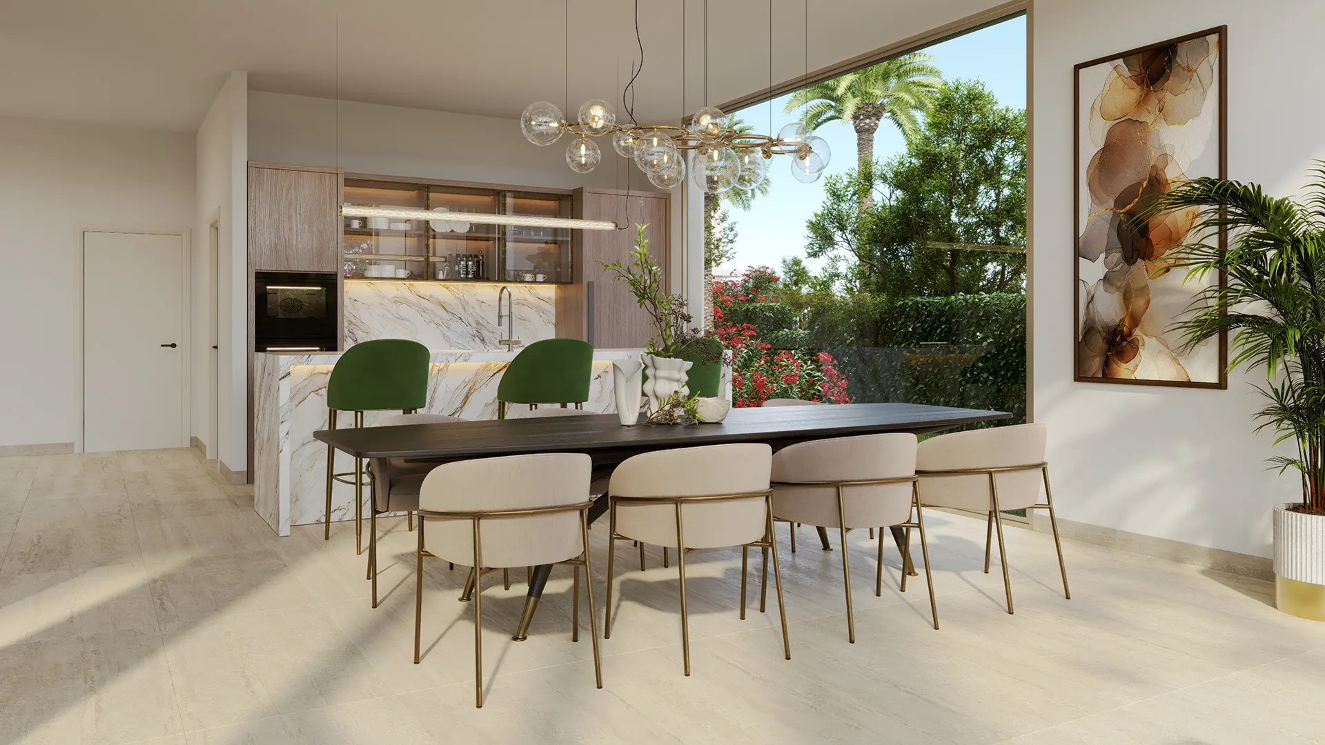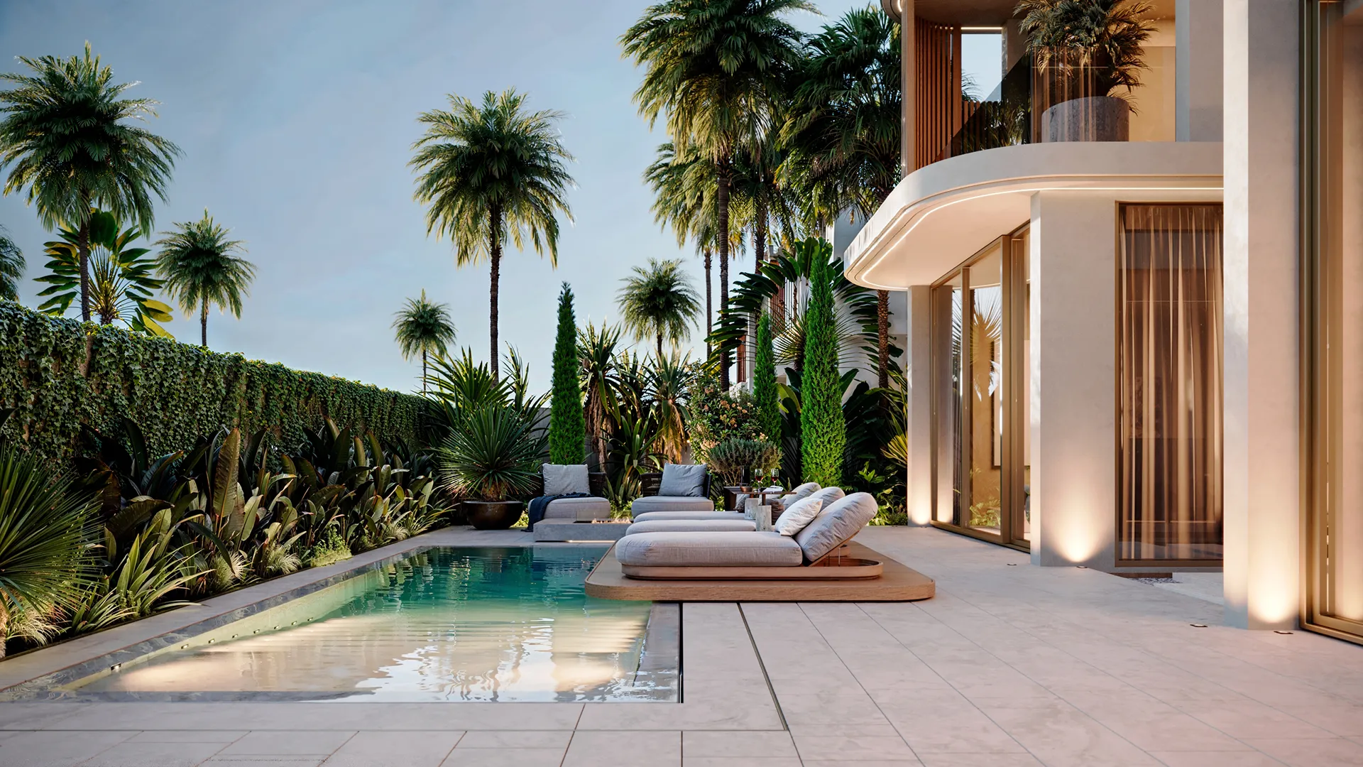 The villas and townhouses form fluid residential clusters defined by generous outdoor living, and a strong sense of privacy. Offering four- and five-bedroom residences, all homes feature expansive interiors configured for comfort and flexibility. Twin villas are distinguished by refined architectural walls, while townhouses extend living spaces outdoors with private areas to both the front and garden-facing sides, creating homes well suited to family life.
